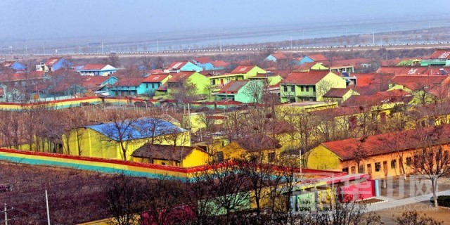这是大荔县范家镇依托十万亩黄河湿地优势资源,为发展当地的特色旅游业,走出了一条独具特色的美丽乡村之路,把村庄民居打造成五颜六色的便是重点打造的项目之一,专门从省城请来了设计专家,为村民们统一粉刷门窗,请来的美术师们靠自己的想象力和创作力,给每家每户的院墙上都画上了色彩鲜艳的墙画,七彩新渔村成了游客们的喜爱的旅游地。据介绍,七彩鱼村为七色功能区,红色为“福”文化区,橙色为时尚动漫区,黄色为黄河风情文化区,绿色为自然亲子区,青色为民俗生活区,蓝色为科技前沿区,紫色为爱情主题区。由彩色妆扮的多彩渔村充分响应了人与水,人与自然色关系,体现了天人合一的意境。让黄河岸边成为当地旅游业和经济发展,群众增收的新引擎。