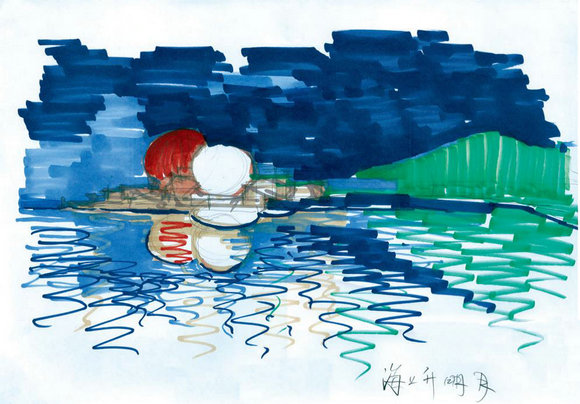 图片5:2008年,陈可石教授手绘歌剧院构思草图之一