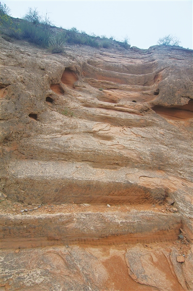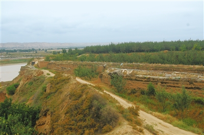 大凡山川,必定有奇异瑰丽之处。距兰州100多公里外的靖远三滩乡的黄河岸边,有一个算不上高大的坪,其上却雄踞着一座三角形城池。古城向来四四方方,为何在黄河岸边有座三角城呢?它究竟是啥来头? 山崖陡峭,城墙残破,那里有座神秘的三角城 这是一个有特色的地方。从兰州出发,沿高速公路,过白银,往宁夏方向前行,走不多远,就是一座跨越黄河的大桥。如果,在夏秋季节,你肯定会被看到的一切所惊呆。 这桥没有什么特色,和同类的跨黄河大桥相比,算不上长,也算不上高大,更算不上古老。说实话,就是一座平淡的不能再平淡的桥。为何过这座桥会让人吃惊呢?秘密就在桥下的景色,它令每一个西北人感到惊奇。这桥边究竟藏着什么呢? 汽车上桥,起初我没有在意,N多次走过黄河,即便有些奇异的感觉,也早就麻木了。谁知,向车窗外一看,初为河边的景色所吸引,继而发出惊叹。这是国庆节前的一天,天高云淡,烈日当空,黄河水算不上水平如镜,但也绝对不是汹涌澎湃,几乎和岸边的田地一样齐,就那么在岸边一漾一漾的,缓缓往前而去,似乎很有节奏,很平淡。在岸边的则是大片的稻田,一望无际,大概有数千亩之多。泛着金黄色的稻子,微风吹过的时候,一晃一晃的,如同平静海面上,传来一层层的波浪。秋天是收获的季节,曾经直立的水稻,早已低下了它们傲慢的头,稻穗金黄,而稻秆还间或有青枝绿叶,在向上疯长,看着就是一幅美得不能再美的画。同行的朋友说,我们要去的三角城,就在稻田的尽头。 在靖远朋友指点下,我们在吴家川出口下了高速公路。这里是通往靖远县城的路口,然而我们没有去靖远县城,而是向北拐上了另外一条路,直奔三滩乡乡政府。三滩乡地处黄河西岸边,有丰富的灌溉水源,是靖远比较富庶的乡镇,而这里的万亩稻田,不仅在白银独树一帜,其规模在全省也是数得着的。 三滩距离靖远县城20多公里,为黄河边的一处狭长如弓的滩地,分布着三滩和糜滩两个乡。听到“三滩”这个名字,许多朋友的第一反应就是大概是由三个黄河滩涂所构成的吧。其实不是,三滩原名是三角城滩,后来人们为了方便,省减为三滩。 我们要去的三角城就在三滩乡的中一村西边的山梁上。过三滩乡政府,穿中一村,沿着乡村便道,往山梁而去。在村子里看,那是个大约50米高的山,山崖很陡峭,山顶上有一段段残破的墙体。朋友们说,那就是三角城的遗迹了。 这个充满着未知之谜的古城,究竟会给我们带来哪些惊喜呢? 城墙中,神秘的卵石,究竟有何秘密 上山的路虽然有些窄,但却畅通无阻。在山脚下,没有犹豫车就很顺当地爬上了坡顶。这时,我们才发现,从山下看上去是个山梁,实际到山顶,却是个坪地,当地人把这个地方称为二龙台。 坪台上是一眼望不到边的苹果树。起初,路只有一条,我们在如同迷宫一般的苹果树林中,绕来绕去,走了几分钟后,出现了一个三岔路,三滩乡的朋友毫不犹豫地让我们左拐,果然走了不远,一堵城墙出现在我们面前。这就是三角城的一角了。 下车,我们就被淡淡的苹果香所笼罩,停车的地方是古城一处类似角楼的地方。看得出来,这段城墙很厚。第一感觉,这是一座有故事的古城。 没有想到,最先出现在我们视野中的,却是神秘的卵石层。跟着朋友,沿着城墙边的小路,慢慢往前探。这是一条通往黄河边的小路,走不远,就看到城墙中上部大约两米高的位置上,平平整整地出现了一层卵石,石头大小相差不多,约有两个拳头大小,两三块叠压在一起,显露出来卵石层,大约有两米长,而在卵石之上,则依旧是一层层的夯土层,直到城墙的顶部。 为何在城墙中间,忽然出现一层卵石呢?这又不是黄河边的地层,会有古代河流湖泊的沉积;而且即便是湖泊沉积,也不会只有大小相差不多的石头。显然,这些石头是经过人工挑选的。一般来说,城墙上的石头,往往是守城将士们所用的礌石,但守军所用的礌石往往是成堆出现,而不是一层铺在城墙上,这样会给守军造成往来的不便,降低防守的效率。 过卵石层,我们又看到城墙凹进去一块,竟然看到了用来加固墙体木料的遗迹。往前走,城墙逐渐在降低,很快就看到了黄河。文物调查数据显示:“三角城古城堡,位于中一村西的山梁上,北面是闫家门古渡,南面是大面积的耕地,东面则是黄河。古城遗址周长990米,西城墙长400米,西南角自南延伸出13米,尽头有角墩。北墙长210米,西北角筑有瓮城。东南面城墙沿崖头自然形势而筑,长达380米。现为县级文物保护单位。”显然,这些简单的资料,并不能说清楚古城的来龙去脉。 在城墙的尽头,则又是一个角墩类的建筑,而在角墩的边上,则是一个比较大的豁口,沿着一个陡坡,可直接走到城墙外一处比较低的苹果地里。从这个豁口的形状判断,似乎是城门的遗址了。 城门处并不是城墙最靠近黄河的地方。我们又绕过一段弧形的悬崖,向更靠近黄河的地方走去。路先宽后窄,最窄处一边是苹果园边的田埂,一边是断崖。小心翼翼挪动脚步,终于到了离黄河最近的山嘴上了。站在这里,我们才能大概看到这里的地形。这是黄河边的突出山崖,而坪地就顺着山嘴向黄河岸边展开,呈现出扇形状。古城堡,也自然依照着坪地的形状建造成为扇形。实际上,就是一个三角形的城堡。或许,这就是三角城之名的来历。 不过,古城的神奇,不仅仅局限于此。朋友说,在古城紧挨着黄河的山崖上还有一个神奇的地方。这是我