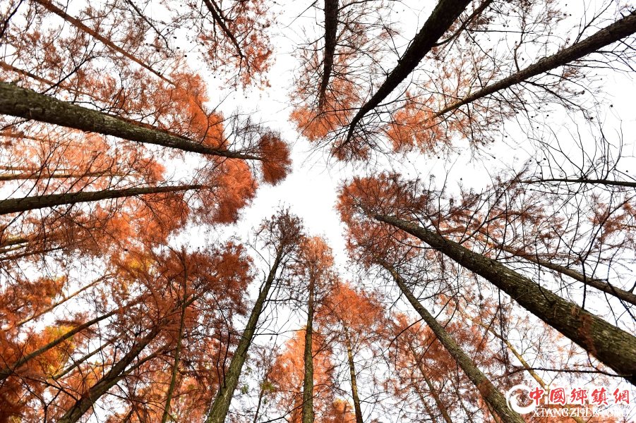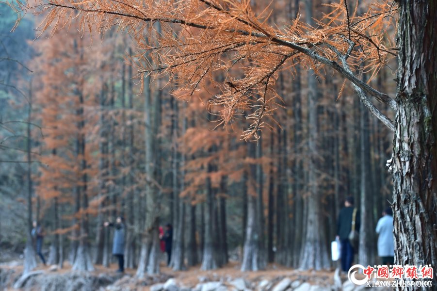 12月6日下午,义乌赤岸镇朝阳水库深处,大片水杉在清水映衬下,五彩斑斓,犹如江南“小九寨”,成为市民寻幽探秘、摄影创作的好去处。