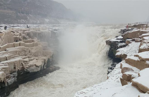 这是12月14日拍摄的壶口瀑布雪景。当日,山西省临汾市迎来了今冬第一场降雪。雪后壶口瀑布景区别有一番韵味。 新华社发(刘江 摄)