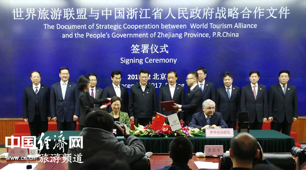12月17日,世界旅游联盟(WTA)与中国浙江省政府战略合作文件签字仪式在北京举行。经济日报-中国经济网记者 裴小阁摄影