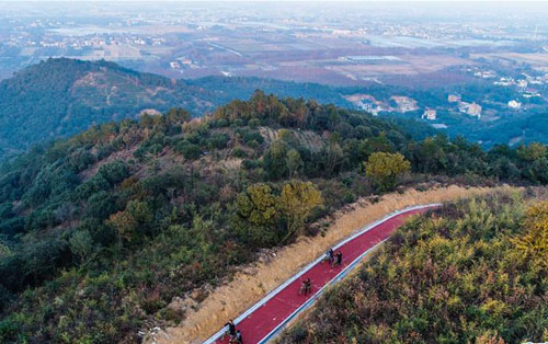 12月21日,游客行进在龙山街道杨梅大道上。这段盘山绿道两边都是茶山、竹林、梅园,是长兴县龙山街道新建成的山村绿道之一,也成为了当地有名的旅游骑行绿道。近年来,浙江省长兴县龙山街道充分利用山村的自然资源,依托红梅、杨梅、茶叶、花卉盆景等农林产业,通过建设22公里的“龙山绿道”,将散布各个乡村的景观串联起来,实现村落景观化、农户景观化。绿道沿途风景秀丽,让骑行者穿梭于杨梅林、茶叶山、森林间、溪涧边、竹海里,零距离亲近自然,在健身休闲之余,享受自然美景。同时,浙江省长兴县不断优化乡村道路环境面貌,方便城乡群众出行,高起点、高标准推动品质型农村路的建设,进一步提升农村公路通畅、通达能力,打通“绿水青山就金山银山”的通途。按照“特色明显、功能完备、一路一景”的标准,推进农村公路向功能型、舒适型方向发展,全方位打造“畅、安、舒、美”的“自然风景线”“历史人文线”“科创产业线”“生态富民线”四大公路线。新华社记者 徐昱 摄
