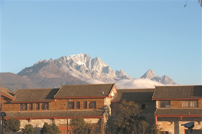 云南丽江看远处的雪山。