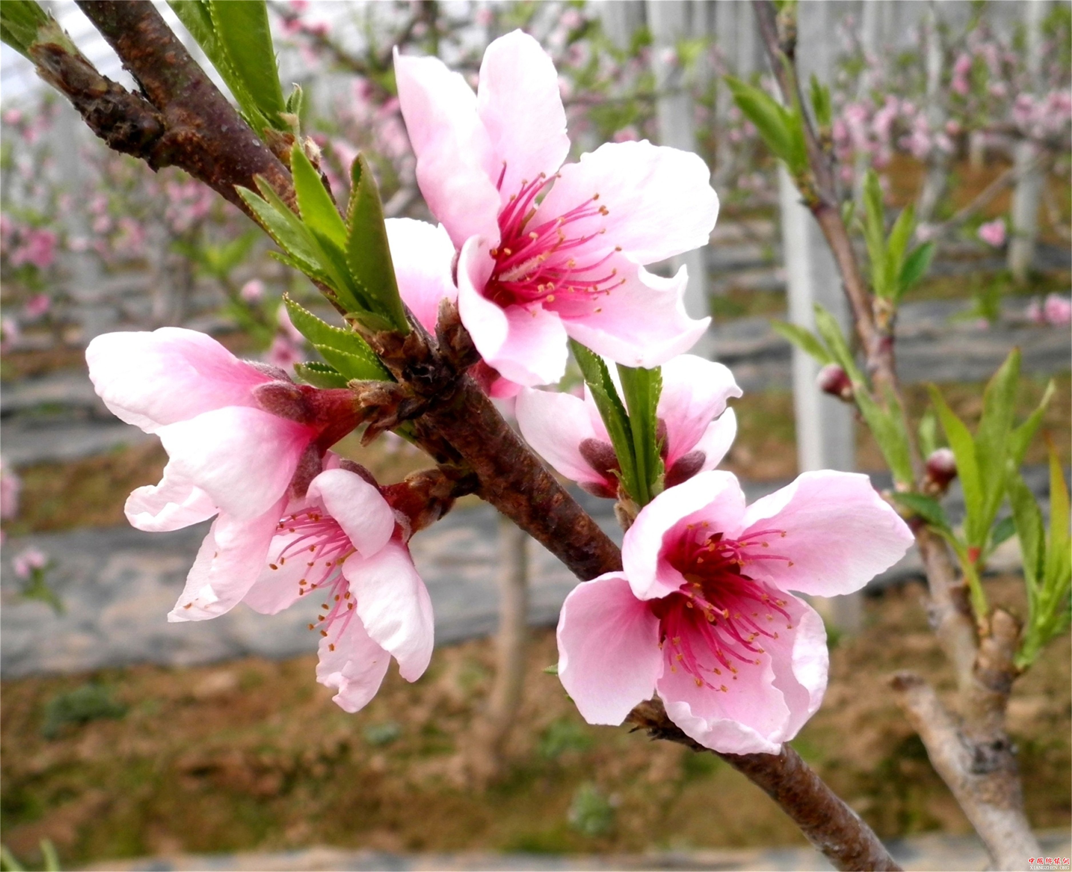棚内春早,桃花盛开,吸引了众多游客观赏拍照,给新年增添了美景。