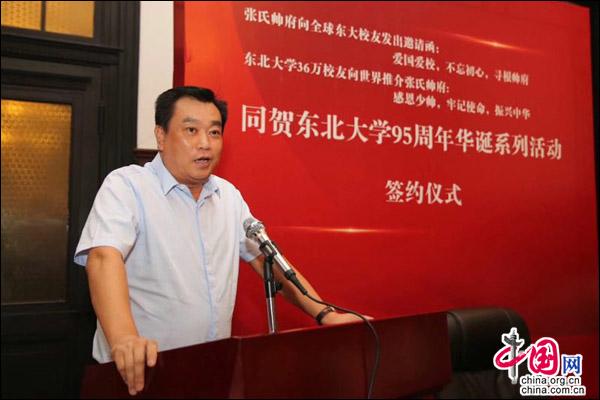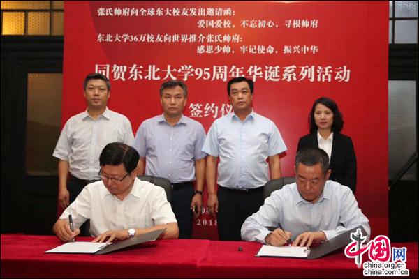 中国网9月3日讯 今年9月15日是东北大学95周年校庆。张氏帅府与东北大学2日举行“帅府东大同贺东北大学95周年校庆系列活动”签约仪式。两家约定,为同贺东北大学95周年校庆,张氏帅府向全球东大校友发出邀请函:爱国爱校,不忘初心,寻根帅府。东北大学36万校友向世界推介张氏帅府:感恩少帅,牢记使命,振兴中华。