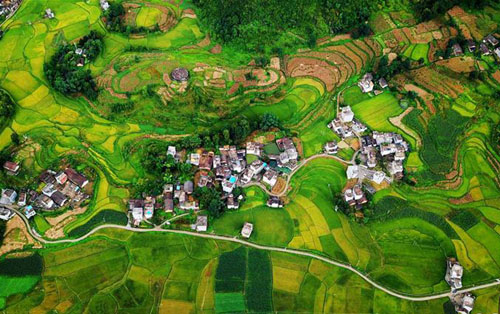 广西隆林各族自治县克长乡田园景色(9月1日无人机拍摄)。
