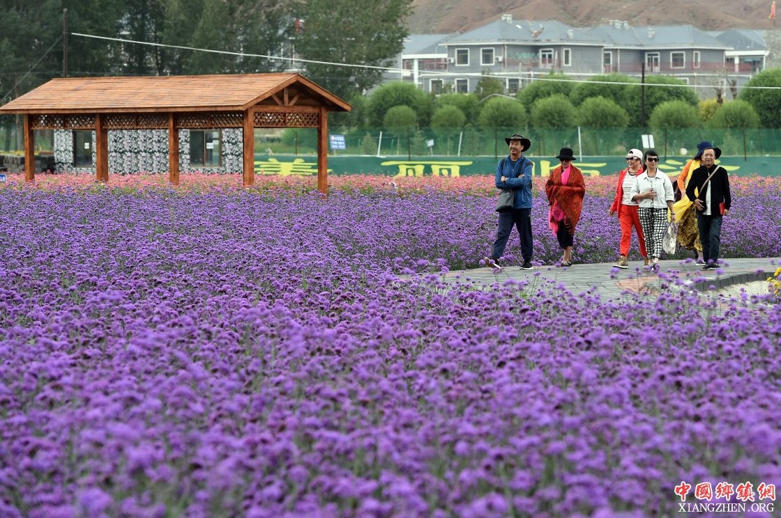 在张掖市临泽县倪家营镇南台村,游客在游览花海(9月1日摄)。