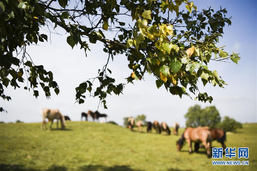 9月1日,马群在内蒙古乌兰布统草原上吃草。