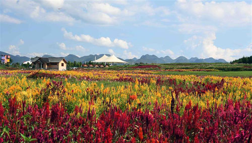 云南省曲靖市罗平县于2018年在区域内打造3000亩七彩花田,大力发展乡村特色旅游产业,吸引游客观景赏花。