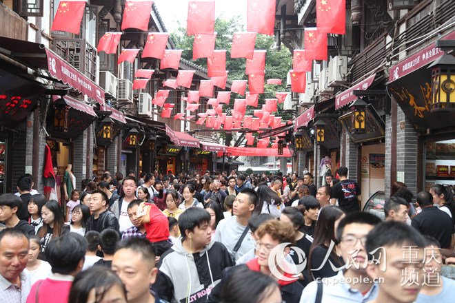 人民网重庆10月2日电 10月1日,国庆长假第一天,沙坪坝区磁器口古镇游客如织,南来北往的游客一览古镇风采,感受巴渝文化。(王嫚 赵杰昌)
