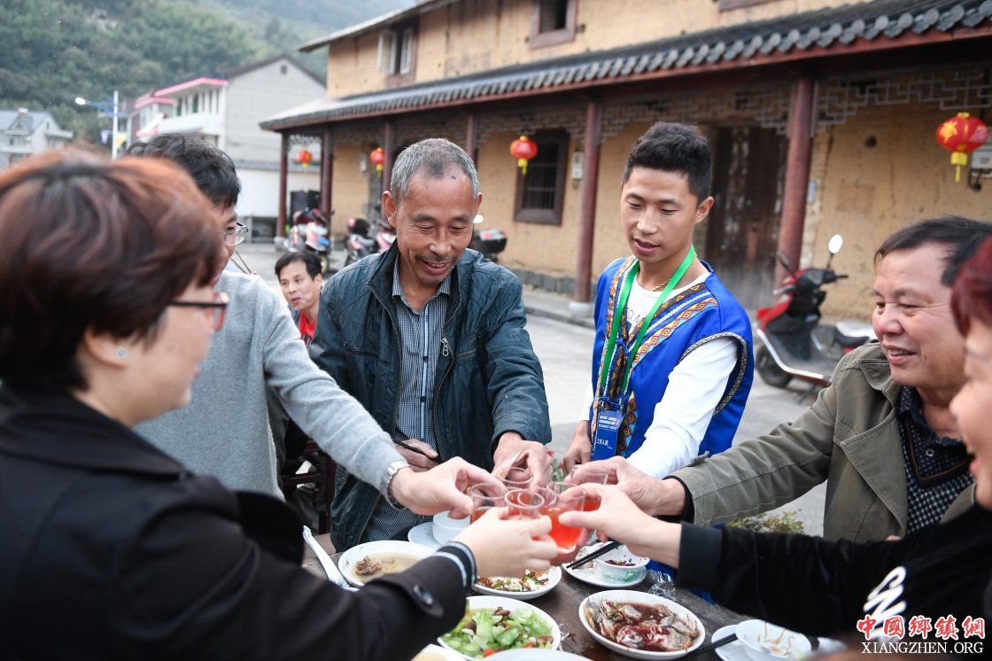 10月17日,在龙峰民族村参加“长桌宴”的村民与宾客共同举杯。