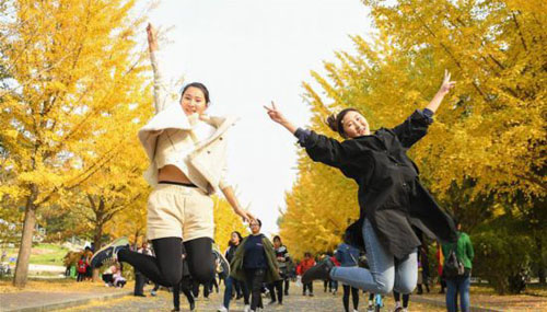 近日,沈阳农业大学内的银杏树进入最佳观赏期,长达一千余米的金色“银杏路”吸引了许多市民前去游览,拍照。 新华社记者龙雷摄