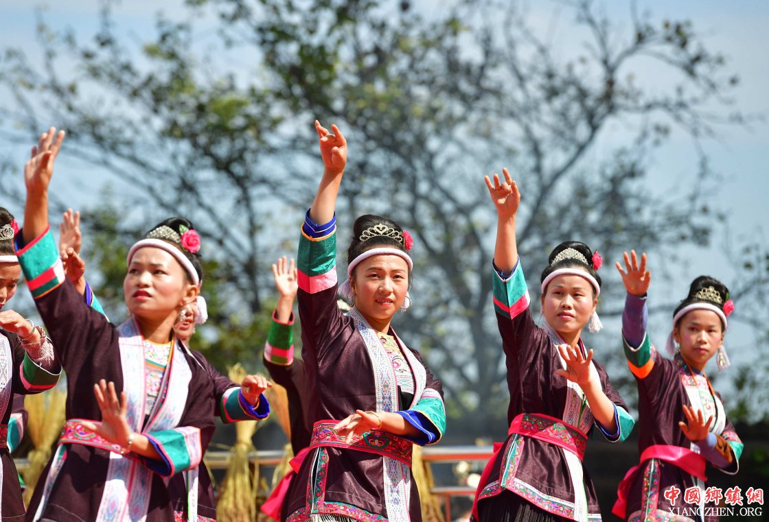 10月28日,在广西融水苗族自治县拱洞乡龙令村,侗族妇女在表演歌舞。