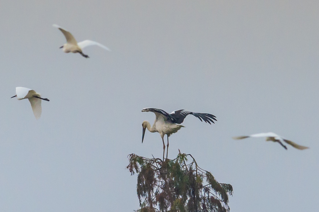 东方白鹳是国家一级保护动物,数量较少。今年是首次有成群规模的东方白鹳来到巢湖湿地。巢湖半岛国家湿地公园管理中心近期派出工作人员加强区域内东方白鹳的监测保护,适量投放食物,为它们营造一个舒适的停留环境。
