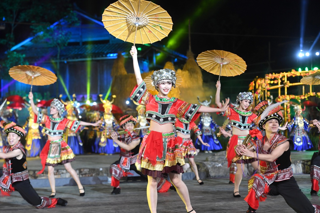 当日,广西柳州市第一届旅游产业发展大会暨2018第十八届中国·融水苗族芦笙斗马节开幕式晚会在融水苗族自治县举行。