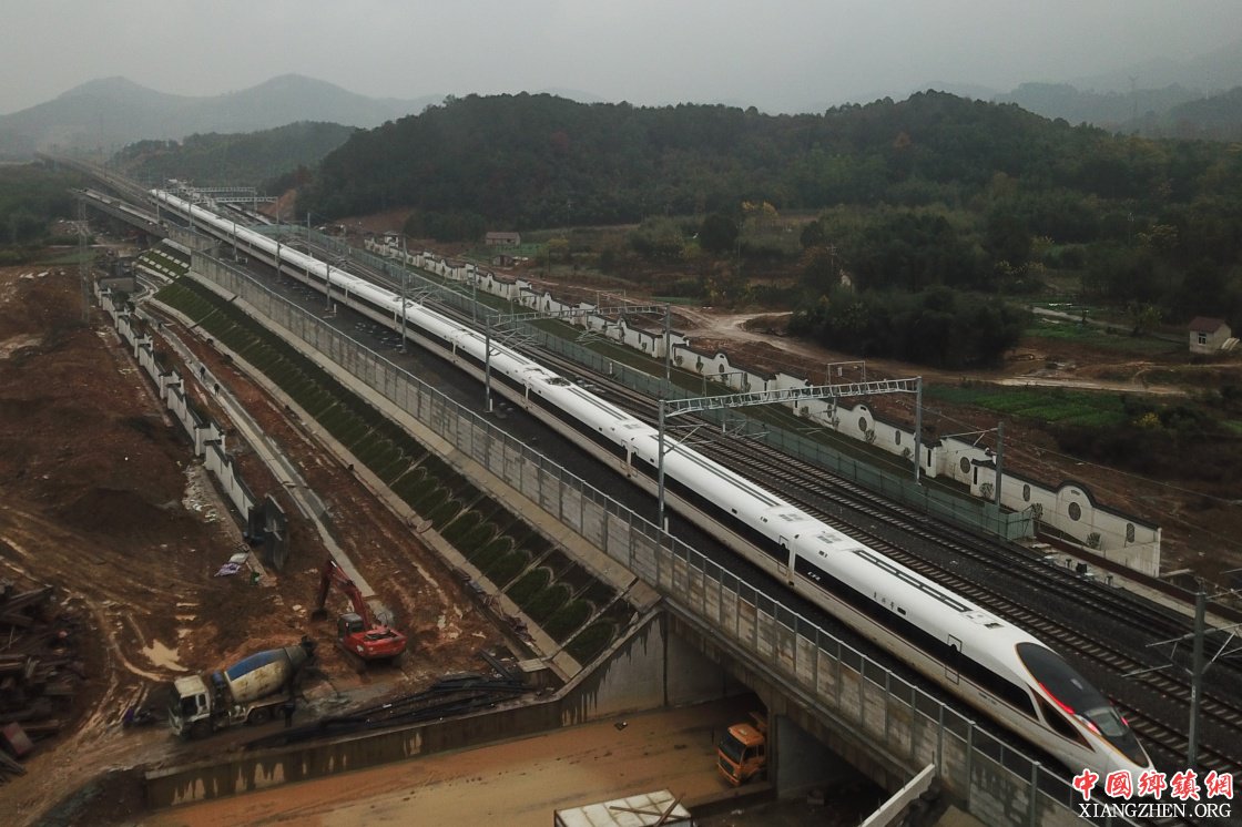 当日,两辆“复兴号”动车组列车首次在处于试运行阶段的杭黄铁路上行驶,列车在杭州南站与黄山北站间多次往返“试跑”。