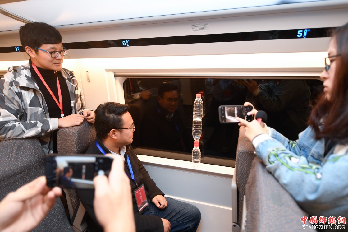 12月6日,试乘人员在行驶的“复兴号”动车组列车上测试平稳性。 “复兴号”动车组列车行驶在杭黄铁路上(12月6日无人机拍摄)。