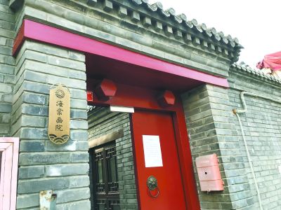 16日下午3时许,记者探访了这处院落。院子所在地距离银锭桥不到50米,青砖灰瓦,红色的对开门,上有门当,下有门墩。门口挂着小巧的金属铭牌,上书“海棠画院”。门上安装了电子门禁系统,进出院落需要刷卡才行。