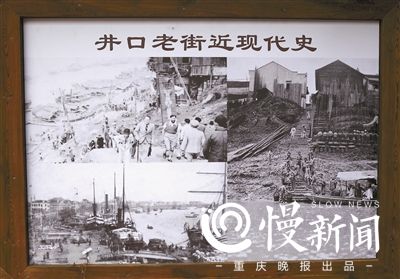“井口繁华于清末民初嘉陵江水码头,码头位于嘉陵江下游,距朝天门长江交汇口不到30公里,曾经喧嚣繁华,早在上世纪二三十年代这个嘉陵江边的水码头就极为繁荣。”沙坪坝区相关负责人介绍,井口清凉庵桥沟碗厂烧制的瓦陶瓷器就从江边的水码头运往各地,这些瓦陶瓷器主要是普通百姓常用的土白玉碗和土罐等。此外,来此停靠的还有盐船和米船等,而这里又是重庆通往合川、遂宁、南充的必经之地,大小客商云集,商贸集中在码头和靠码头的正街,码头上从早到晚来往的商旅川流不息,一派繁忙。“在重庆历史上,井口码头的地位虽比不上邻近的磁器口码头,但在过去,它在嘉陵江的航运史上依然闪烁着耀眼的光辉。”该负责人说。
