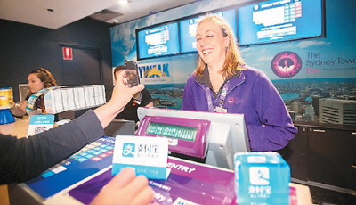 中国游客在澳大利亚悉尼的景点使用支付宝购买门票。 |