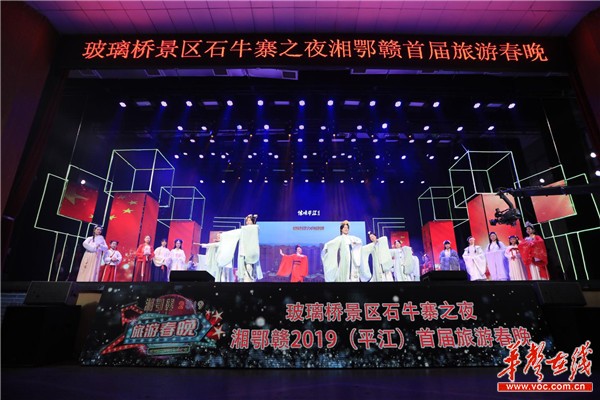 会后,与会人员共同观看了以“体味平江、新春喜乐多”为主题的2019湘鄂赣天岳幕阜山文化旅游融合发展示范区首届旅游春晚。