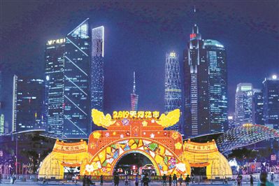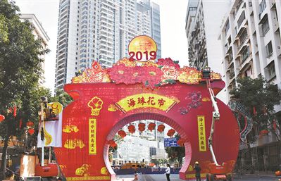 作为迎春花市的重头戏,各区都高度重视花市主牌楼的设计。越秀花市的四牌楼造型、海珠花市的“聚宝盆”造型、天河花市的“天”字和“铜钱”造型等等,各区都结合本区实际,最大限度地彰显岭南文化底蕴和猪年民俗特色。