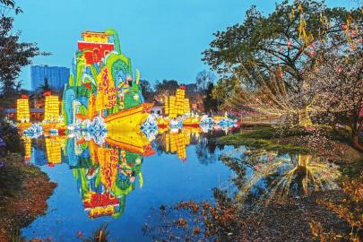 每年春节,到大庙会赏三国灯已成不少成都市民过节的重要内容。今年的成都大庙会,主办方在灯组上下足功夫,从主题灯的体量到氛围灯的数量,都创下了历届之最。记者在现场看到,武侯祠西区大门的“汉宫门阙”高达15米,立于灯下,顿感排山倒海的气势扑面而来。湖面主题灯组“威震华夏”则高达22米,这组彩灯展现了三国时期的经典战役——水淹七军,一幕精彩的三国故事图卷在波光粼粼的湖面上徐徐铺展。西区中轴线上,“蜀汉胜迹”灯组则把武侯祠博物馆三国遗址遗迹调查成果和灯组相结合,打造出一条时光长廊。