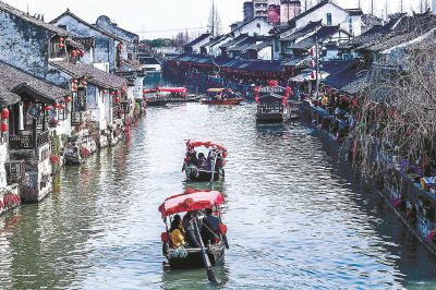 晨报记者任国强报道 大年初二天气晴好,枫泾古镇内人潮涌动!