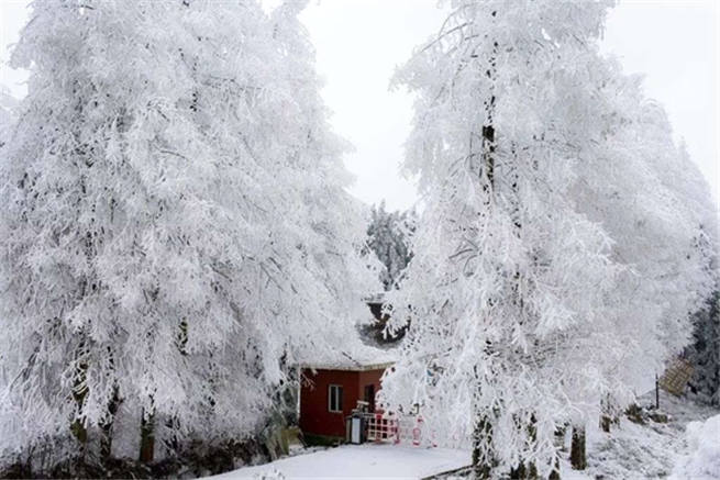 今(9)日上午,记者在地处渝东南的彭水县摩围山景区看到,纷纷扬扬的雪花从天而降,不一会儿,田野、房舍、群山一片雪白。站在景区高处,放眼望去,整片摩围山一片银装素裹,银花怒放的柳沙千姿百态,琼枝玉叶的松树婀娜多姿。如梦如幻的雾凇为整个景区增添了无限的遐想,让人心旷神怡。