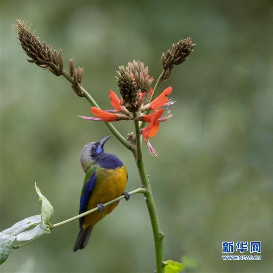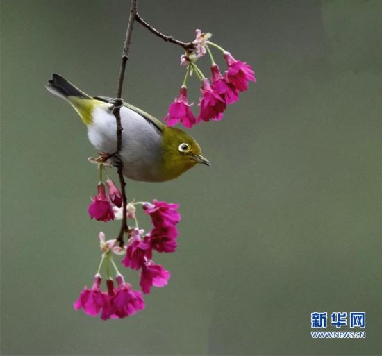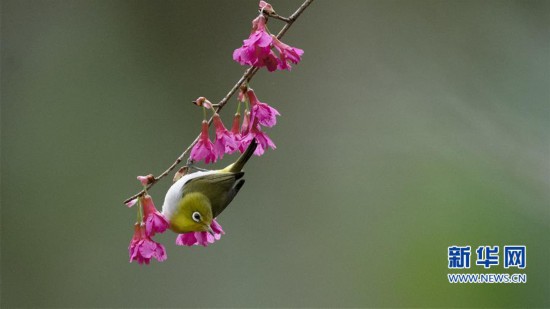 初春时节,福建省福州市的樱花、刺桐花、羊蹄甲花渐次绽放,吸引小鸟前来嬉戏、采蜜。