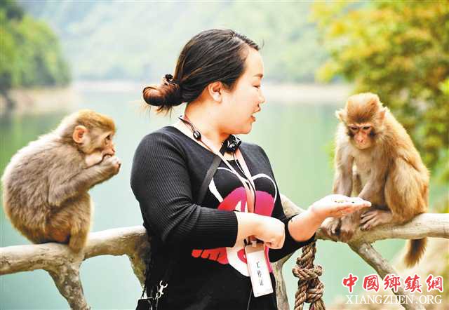 4月13日,在酉阳阿蓬江神龟峡景区的双泉乡和苍岭镇交界处(小地名猴王谷),成群结队的野生猕猴聚集在景区周边觅食、嬉戏,与游客一起玩耍。近年来,当地生态环境逐年变好,吸引不少野生猕猴安家。