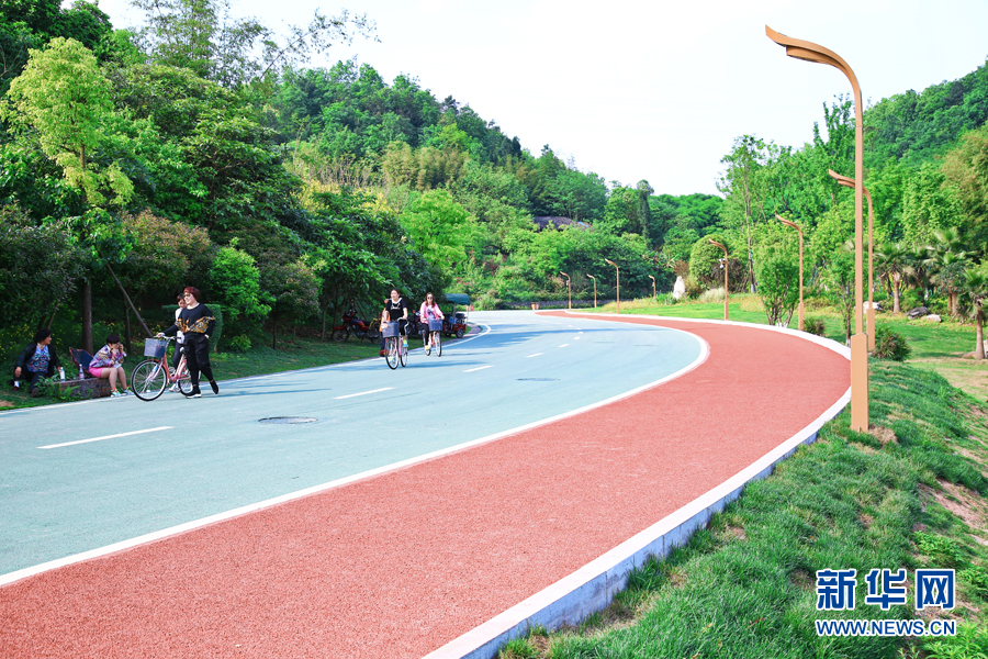 新华网重庆4月18日电(欧阳虹云 刘磊)今年初,重庆铜梁区玄天湖景区近10公里环湖道路完成改造,铺上了彩色沥青与塑胶。玄天湖景区的“颜值”升级得益于铜梁去年启动的西郊示范片西郊绿道工程。该工程计划整治、改造西郊示范片原有的道路系统,完善公共服务设施配套,发展相关产业,并鼓励沿线居民美化绿道周边环境。