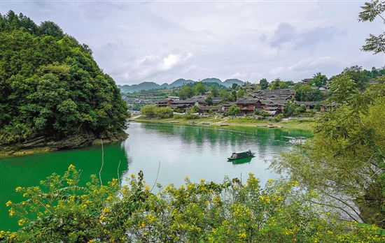 酉水河畔的河湾山寨 新华社记者 刘潺 摄