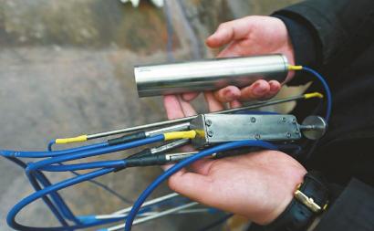 2019年3月17日,技术人员展示光纤光栅渗压计和位移传感器,这个设备也是首次被应用到文物保护上。