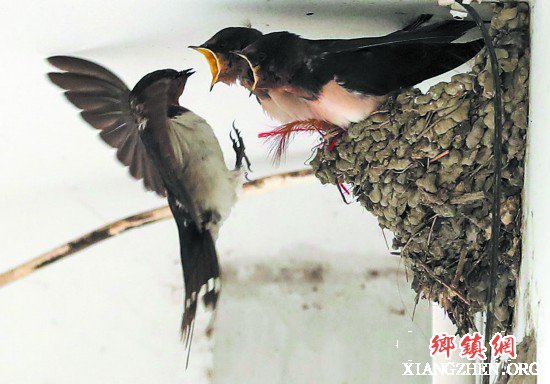 燕子在龙泉山城市森林公园绿道筑巢喂食