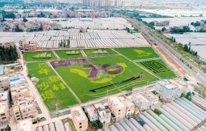 长城、国旗、帆船、“70”……这是位于滇池之畔的晋宁沙堤村村民在稻田里种出的画作。