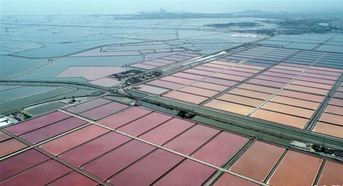 9月19日无人机拍摄的天津长芦汉沽盐场盐池。 近日,天津长芦汉沽盐场开始秋季扒盐,鸟瞰阳光下一个个纵横排列的盐池,犹如色彩斑斓的调色板。 新华社记者 岳月伟 摄
