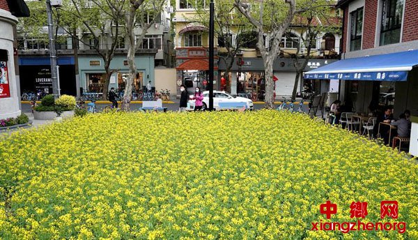 4月6日拍摄的上海市愚园路街边的油菜花。 近日,上海市愚园路街边的一片油菜花绽放,为行人和居民送去自然的芬芳。 新华社记者 陈飞 摄