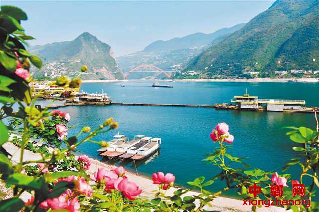 4月27日,在三峡库区腹心的巫山县滨江路边拍摄的蔷薇花映衬下的秀丽巫峡。近年来,巫山县结合长江沿线“生态优先,绿色发展”理念,在三峡水库175米水位线上种植景观林,栽植蔷薇花卉。现正值蔷薇花盛开的时节,城市滨江路成了花的长廊。多姿多彩的蔷薇花与碧绿的江水、对岸的青山交相辉映,形成一道靓丽的风景,吸引了无数市民前往观赏拍照。