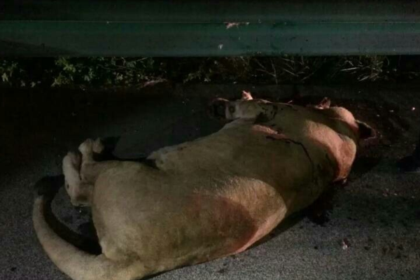 9月7日22时许,一辆河南籍大货车行驶在蚌宁高速公路上,驾驶员周师傅正准备到前方2公里左右的嘉山服务区休息一下。突然,高速公路行车道上蹿出一个黑影,“嘭”的一声,跟车头撞了一下。周师傅急刹车后停了下来,就在他准备下车时,发现这个黑影站了起来,在车灯的照亮下,周师傅吓了一大跳,竟然是头狮子!狮子左腿可能被撞伤了,但仍一瘸一拐地朝前走。惊出一身冷汗的周师傅不敢下车了,赶紧拿起手机向高速路政报警。