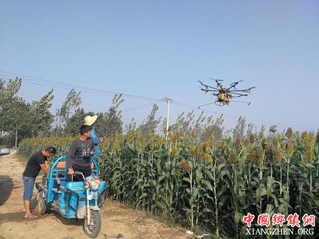 种植户快要成熟的高粱穗上有些虫子,会影响高粱的产量,高粱有2米多高,雇佣人工打药不仅费用高,而且操作困难费时费力,无人机喷洒农药省时省力费用低,很受种植大户的欢迎。