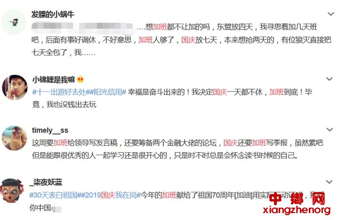 只不过,想休假是人之常情,愿意加班也不只为了3倍工资。有网友未雨绸缪,为了“后面有事好调休”选择加班;有网友为幸福奋斗,决定国庆一天不休;也有网友认为,“能和优秀的人一起学习”虽然累但很开心;还有网友表示要用实际行动向祖国表白,加班献给祖国……