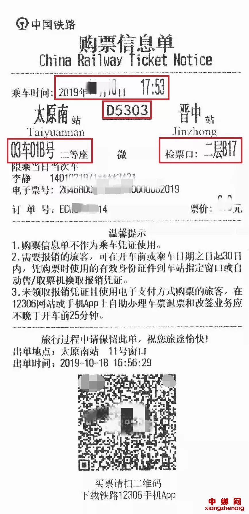 旅客还可以使用微信扫描报销凭证上的二维码查询车次、席位等信息,如下图所示。