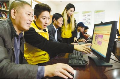 江苏镇江市,志愿者在指导消费者学习网上购物技能。人民视觉