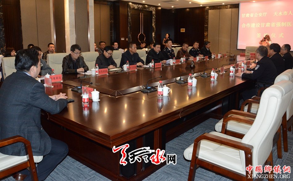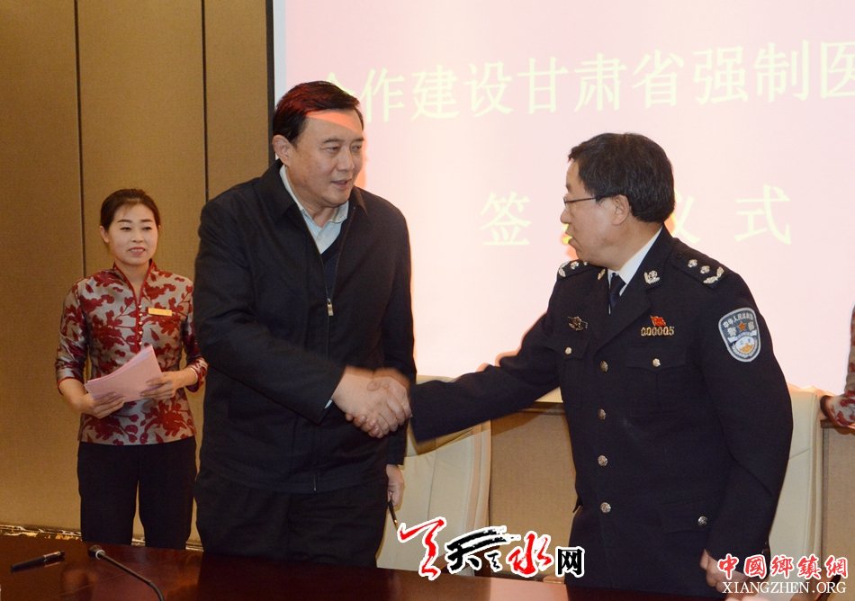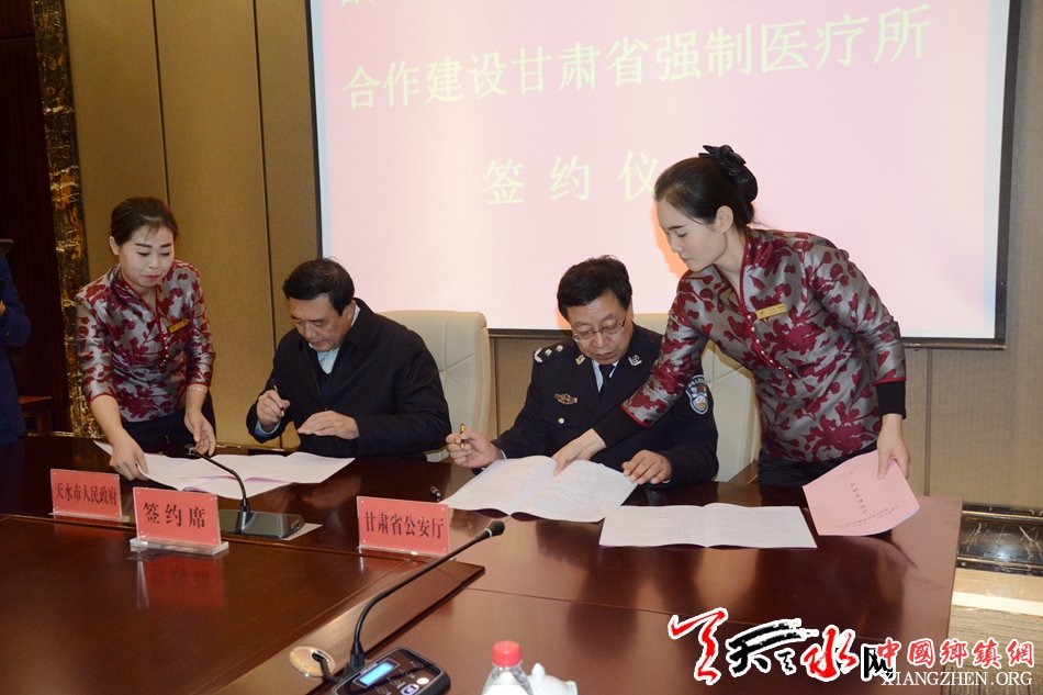 天天天水网讯【记者何郁】11月14日,省公安厅副厅长李晓林,市委常委、常务副市长赵卫东分别代表甘肃省公安厅、天水市人民政府,在天水宾馆签署合作框架协议,建设甘肃省强制医疗所。