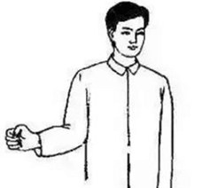 自然站立,在患侧上肢内旋并向后伸的姿势下,健康侧手拉患侧手或腕部,逐步拉向健侧;另外,还可以在身体正面,用正常上肢辅助患肢抬上臂。