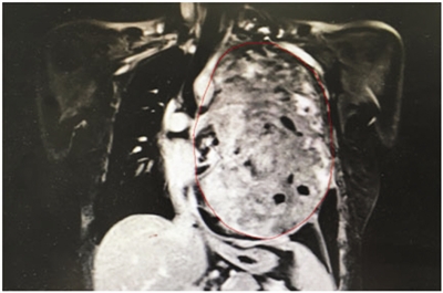 患者的丈夫小心翼翼地说道:“都说肿瘤太大了,手术风险高。我们孩子才8岁,她不能没有妈妈啊!”原来6个月前,患者出现左侧胸痛,在当地医院就诊后口服中药治疗,症状反复,于2019年3月28日就诊于某医院,明确诊断了病情。