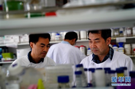 中科院上海巴斯德研究所疫苗学与抗病毒策略研究组组长黄忠研究员(右一)与科研团队人员在实验室工作(6月3日摄)。新华社记者 张建松 摄