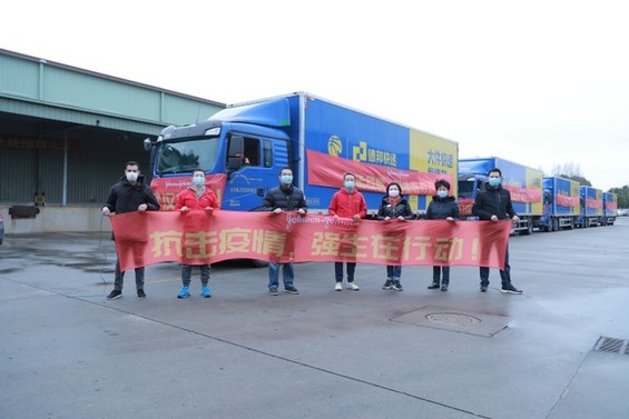 强生中国管理团队为捐赠物资发车做好后勤保障工作